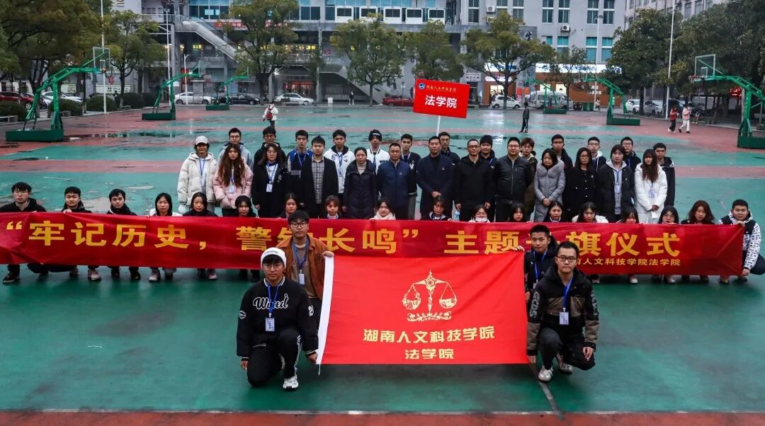 12月13日,法学院在宇光球场举行了主题为“牢记历史,警钟长鸣”的升旗仪式。校学工处处长李玲军、副处长谢四元、科长宋双、法学院党总支书记肖兵明、院长朱耀斌、党总支副书记刘景春、全体辅导员和法学院全体在校学生参与此次升旗仪式。