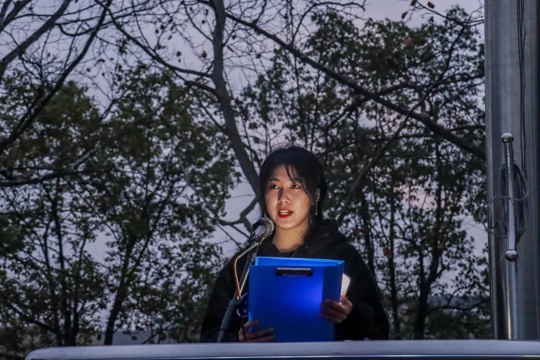 在庄严肃穆的国歌声中,鲜艳的五星红旗冉冉升起。随后,学生代表寇雨欣同学通过回顾中国的屈辱历史,呼吁同学们应该直面历史、把握当下、面向未来。同时,她号召同学们要学党史、感党恩,明大德、立大志,成为新时代祖国的栋梁,为祖国的蓬勃发展注入新鲜血液。