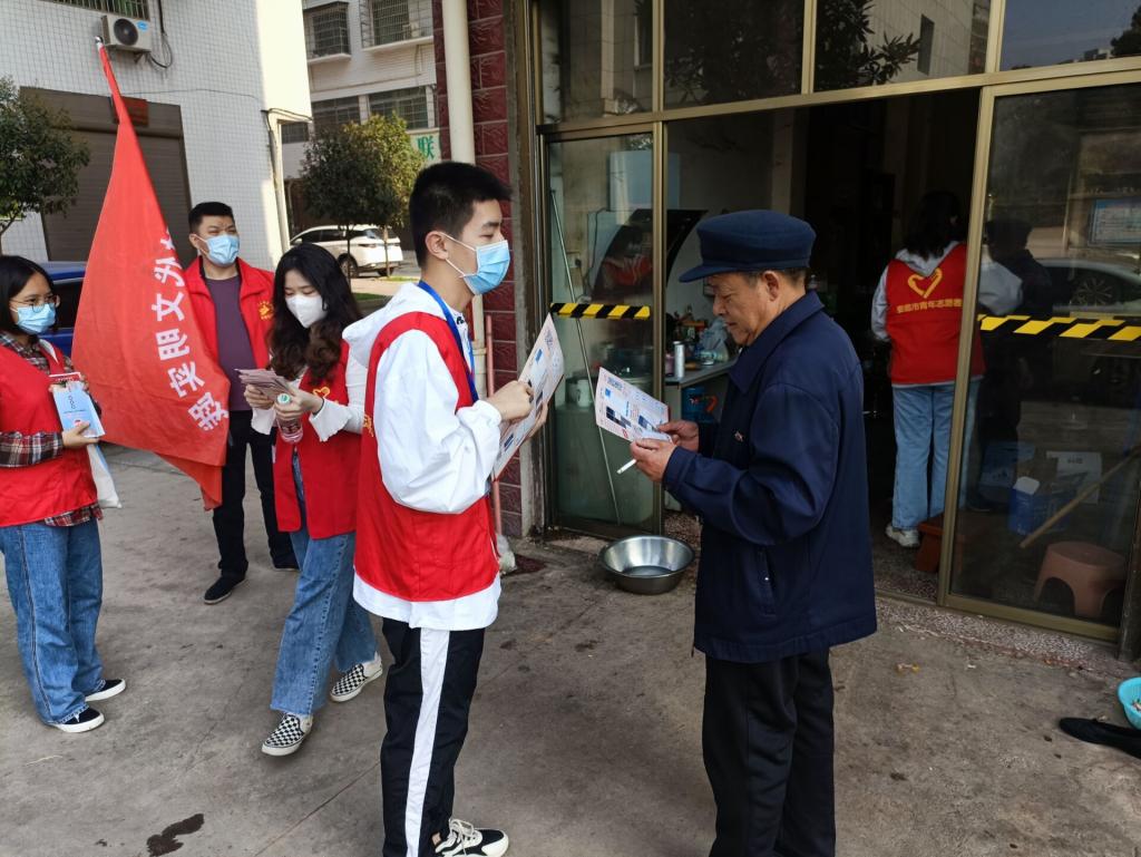 3月13日上午,辅导员宋元烨和志愿者们前往黄泥社区,进行集合分组后由各组负责人带领前往目的地。志愿者们分发普法宣传单,宣传相关普法知识。下午,青年志愿者邹宏宇作为普法讲座主讲人,为黄泥社区居民进行普法讲座的宣讲,旨在使居民们增强法律意识,知法守法,用法律维护自身权益。