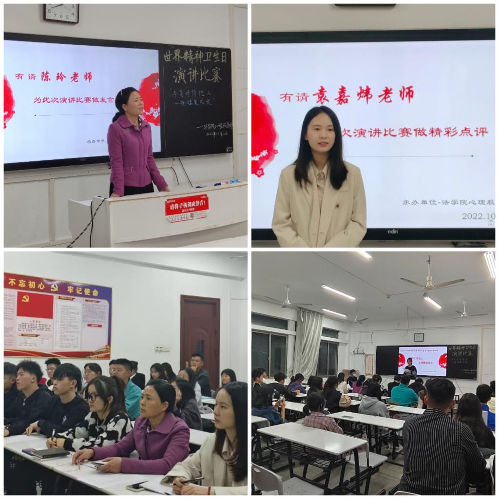 10月9日晚,在心理服务部的组织下,法学院22级各班开展了“10.10世界精神卫生日”的心理健康主题班会活动。在10月10日的演讲比赛总决赛中,心理服务部邀请到学工办主任陈玲和法学院辅导员袁嘉炜以及主席团担任评委。晋级决赛的十名选手都精神饱满,信心十足。最终胡姝同学获得一等奖,靳明桦、程威军同学获得二等奖,刘雯婧、肖娜珍、张智博同学获得三等奖,张浩楠、徐丹、卢思思、罗文静同学获得优胜奖。