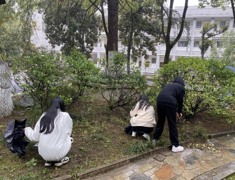 同学们积极热情,拿好工具后便纷纷赶到指定地点开展工作。同学们被分配至花坛的各个角落,有的同学拿着扫帚,将过道一遍遍地来回清扫;还有的同学戴着手套,手握耙子,发挥着“火眼金睛”的能力,仔细搜寻着垃圾,最后将聚拢的垃圾倒往垃圾桶。经历了半个小时的努力,整片花坛恢复了干净整洁。