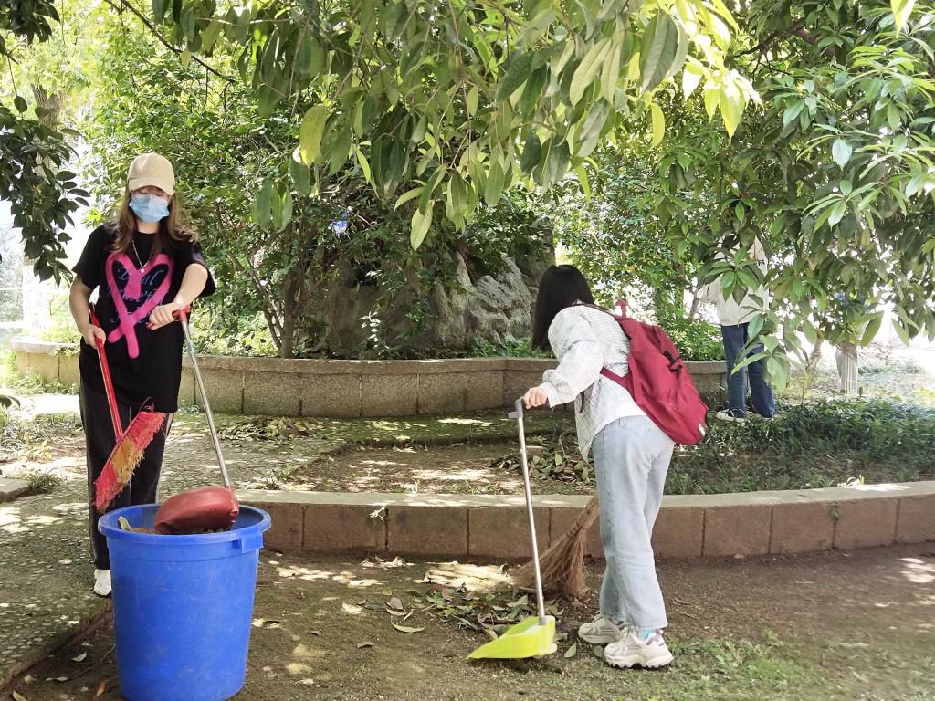 同学们在团支书的带领下来到了本班的负责区域,分配好任务和劳动工具后,同学们积极投入劳动。校园里响起扫帚的沙沙声,同学们弯腰拾起落叶,用耙子将花坛里的垃圾弄出,细小的纸屑垃圾默默用手拾起,花田内挥洒着同学们辛勤的汗水。劳动的时间总是快乐且富有意义,花田很快就焕然一新,同学们脸上都洋溢着灿烂的笑容。