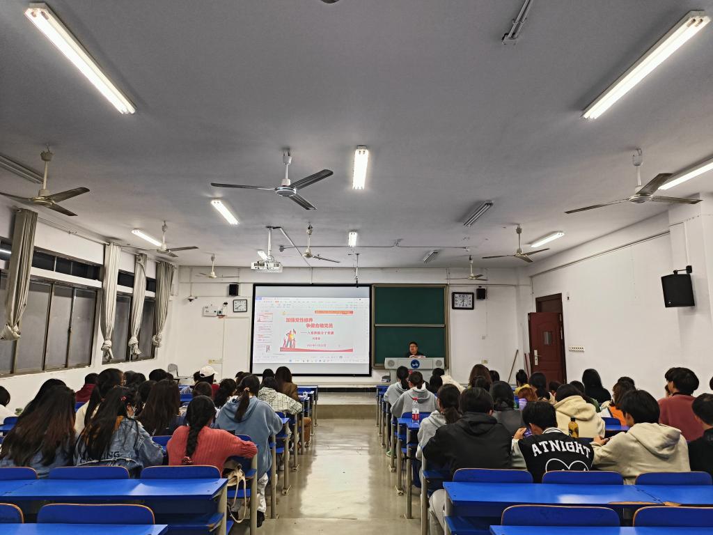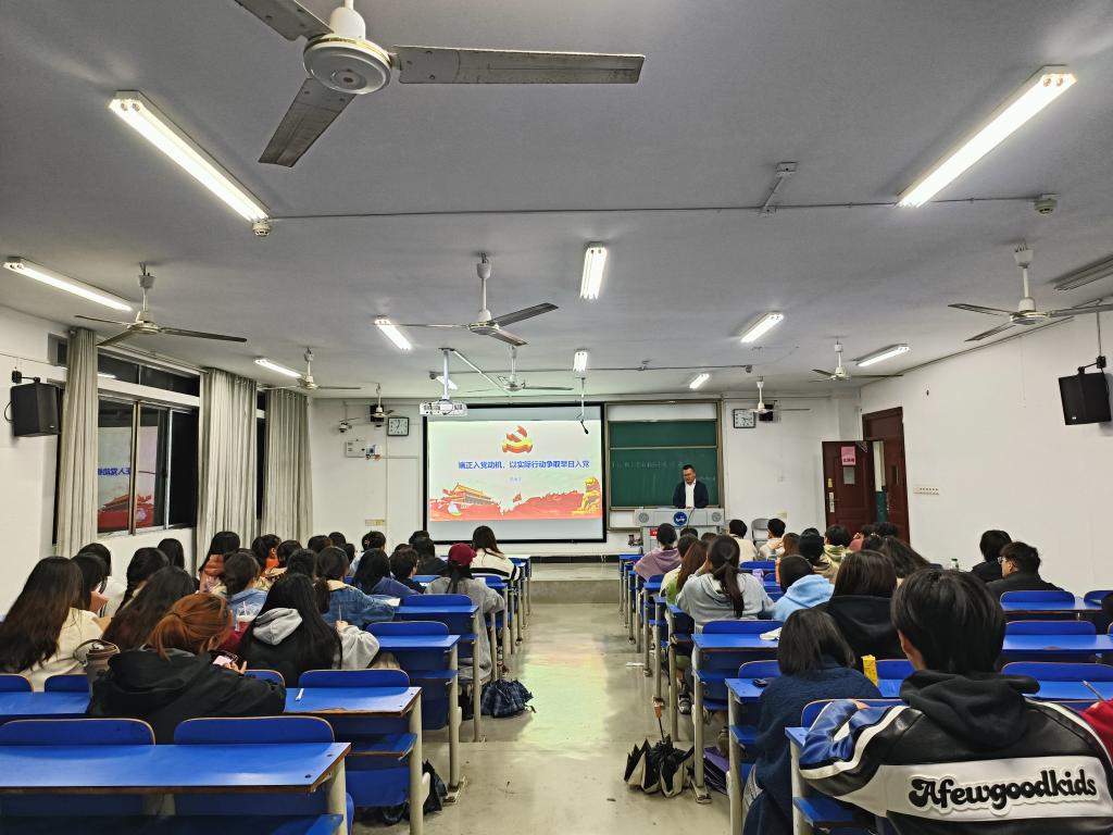 11月18日晚,毛永宁老师以《端正入党动机,以实际行动争取早日入党》为主题,从入党的基本条件和党员的基本要求、发展党员的基本程序两个方面详细的向学员们讲述。他也着重强调了要端正入党动机,把最终实现共产主义社会制度作为自己的最高理想,决心事业奋斗终身,同时要求学生们自觉接受党组织的培养、教育和考察,以实际行动争做21世纪合格的大学生党员。