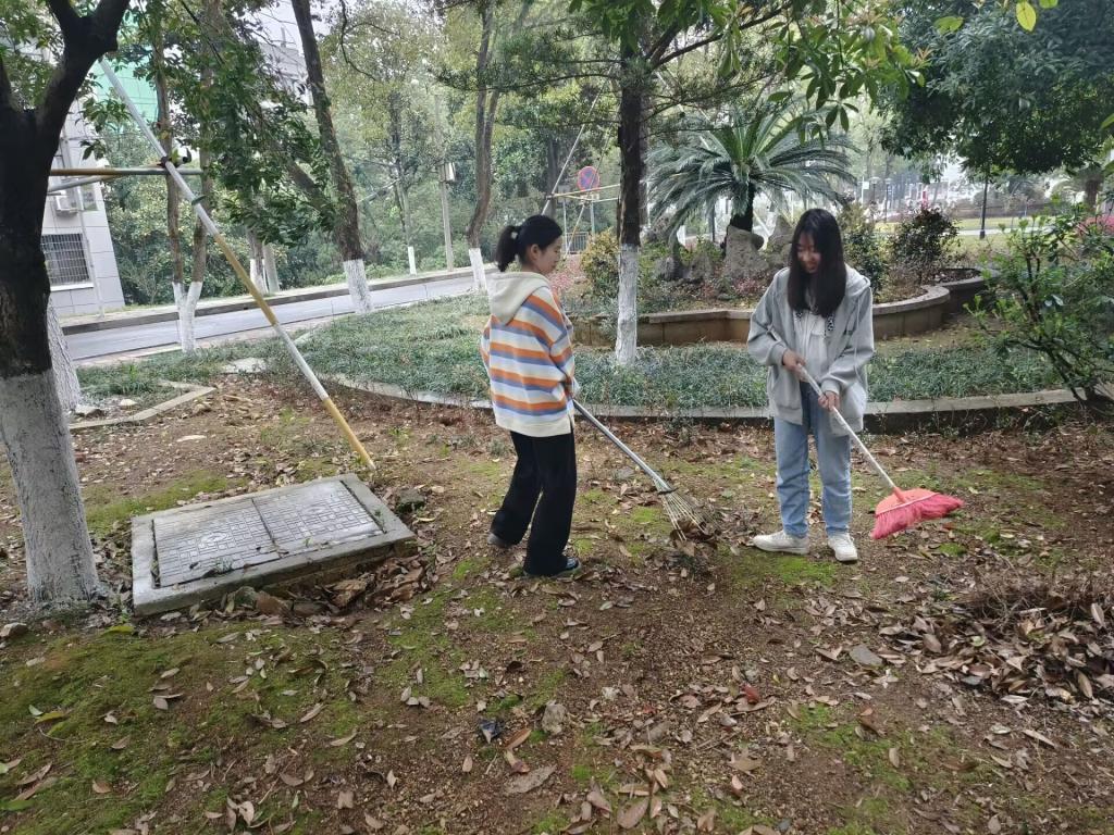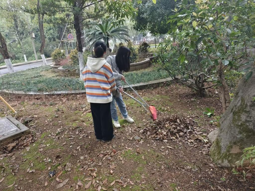 同学们井然有序地带着卫生工具准时到达若谷楼前进行劳育活动。同学们朝气蓬勃,活力四射,准备开展各自的劳动。同学们认真打扫每一块区域,对花坛里的落花、落叶进行清理,捡取白色垃圾,将垃圾进行清运,大家团结协作,通过劳动恢复了若谷楼往日的美丽。