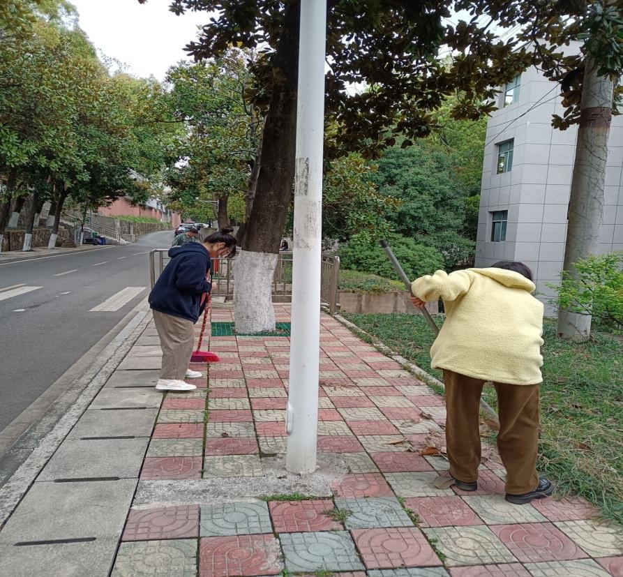本次主要任务是清除若谷楼前道路上和靠左侧草坪上的枝叶以及白色垃圾。打扫卫生期间,负责人进行人员分工,一部分同学负责清扫大马路,另一部分同学则负责草坪枯叶清理,大家认真细致,各自完成好自己的手头工作,将马路上的垃圾,以及草坪里的枯叶一一清扫完毕,校园的某一处又恢复了如往常一般的的干净整洁。