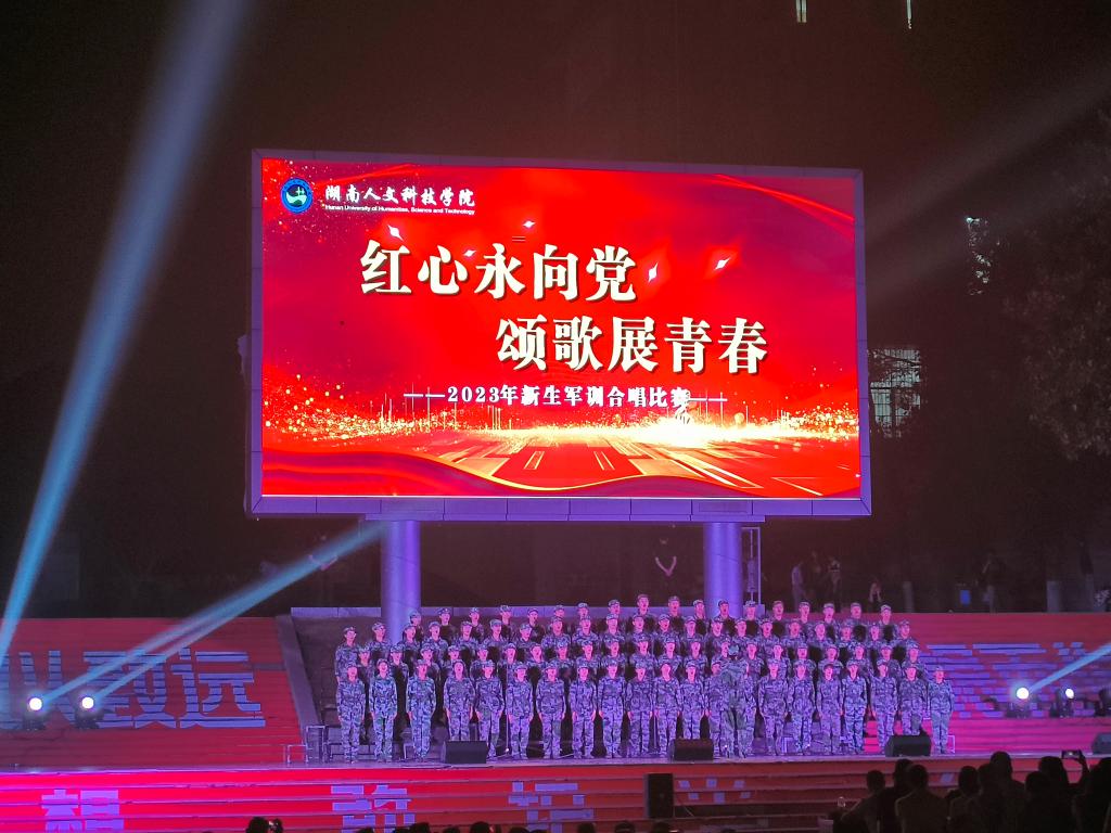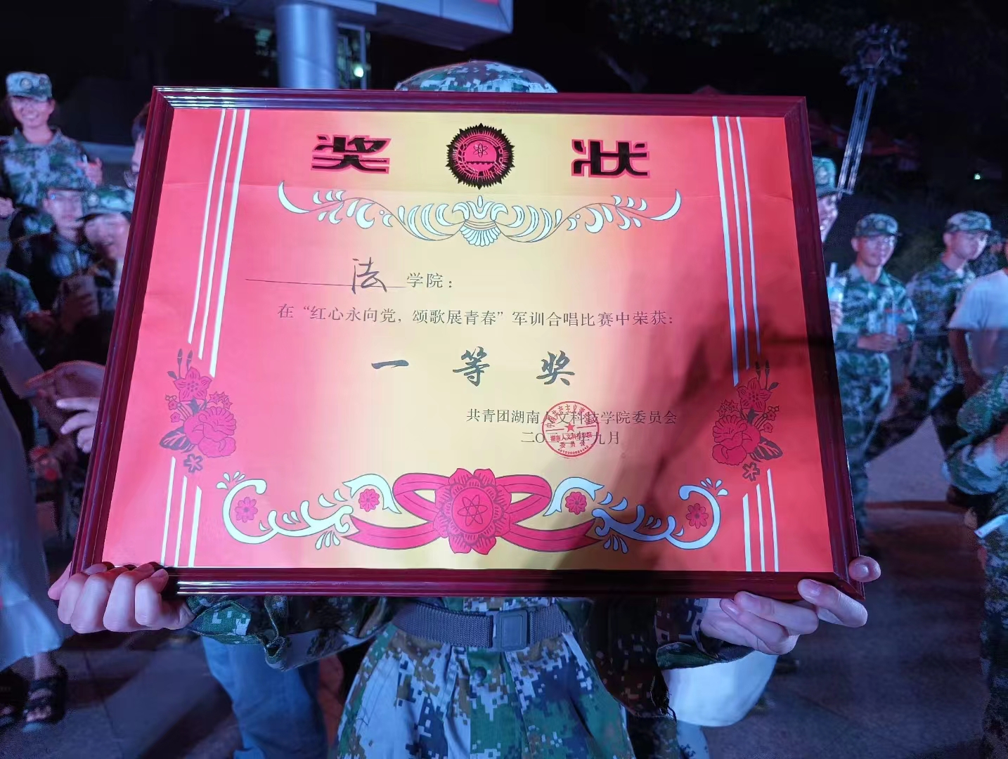 9月27日晚,beat365英国官网于海源广场举办了“红心永向党,颂歌展青春”2023年新生军训红歌比赛。法学院参赛队伍以整齐的队列、饱满的精神面貌闪亮登场,用最慷慨激昂的声音唱响红歌《祖国不会忘记》。红歌声声,声声饱含激情,句句洋溢温暖,唱出了法学院学子对党、对祖国的热爱。最终,经过激烈角逐,法学院最后脱颖而出,荣获红歌比赛一等奖。