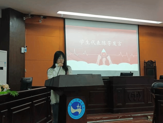 会议伊始,主持人向同学们讲解了常见的献血误区、无偿献血的基本知识以及献血流程。同学们在了解到适量的献血不仅对身体无害,反而能改善自己的身体状况后,都对无偿献血活动表示出兴趣。紧接着,学生代表陈芳发言,她结合自身献血经历向同学们讲述了献血的具体细节和感受,并呼吁同学们积极献血。