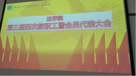 4月26日下午,我院第三届四次教职工暨会员代表大会在致远楼106隆重召开,法学院全体教职工参加了本次大会,