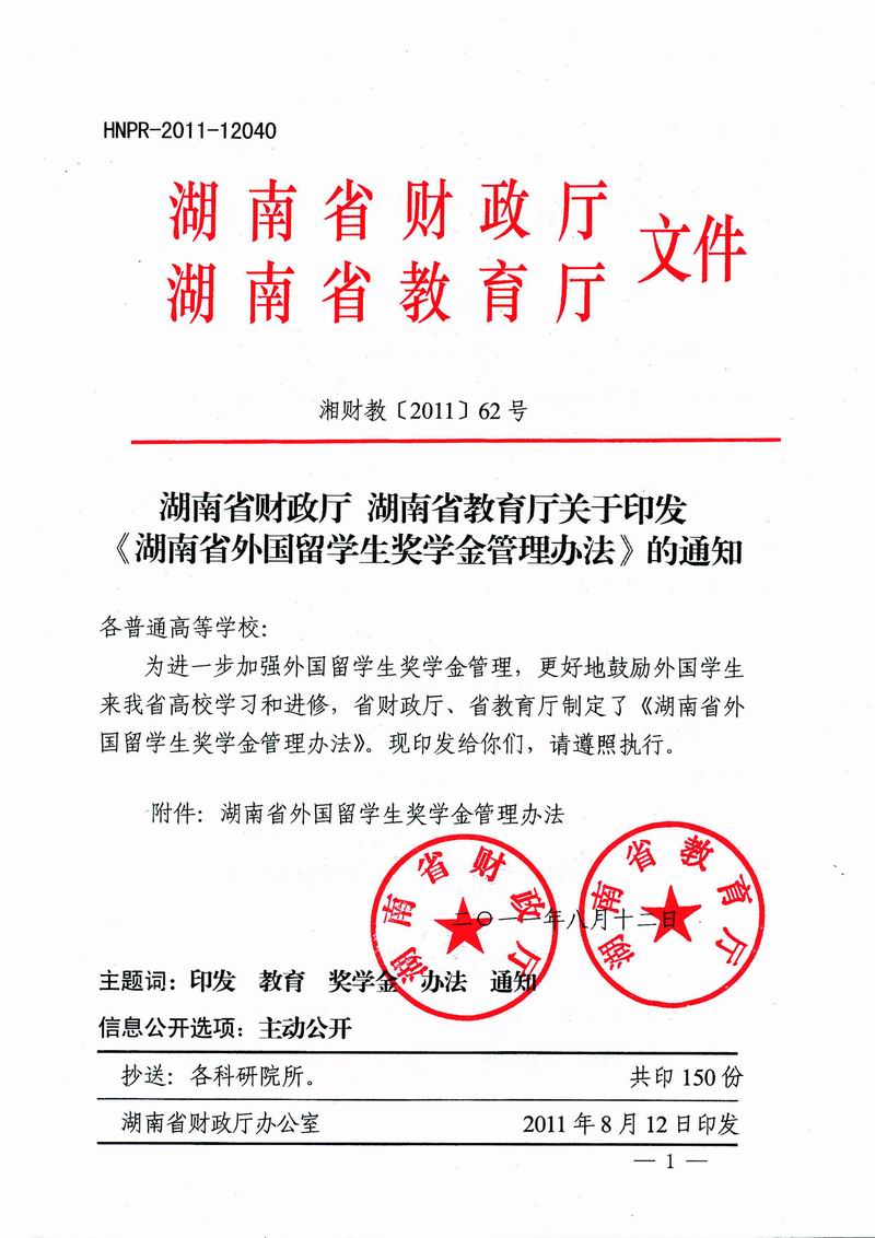 第十二条 各有关高校应及时将奖学金一次性发放给获奖学生,并于每年10月30日前将获奖学生名单按《湖南省外国留学生奖学金备案表》(见附表3)格式分别以纸质和电子文档报省教育厅备案。