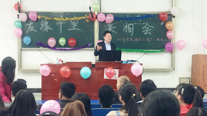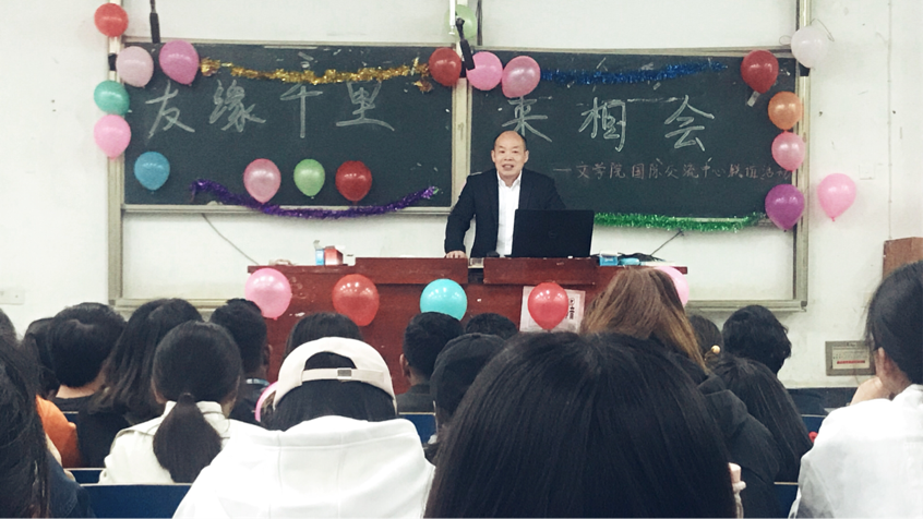 411日晚7:30,文学院和beat365留学生联谊活动在致远楼119举行。出席此次活动的有文学院、留学生主管部门的领导、教师和文学院1718级三个班的同学。