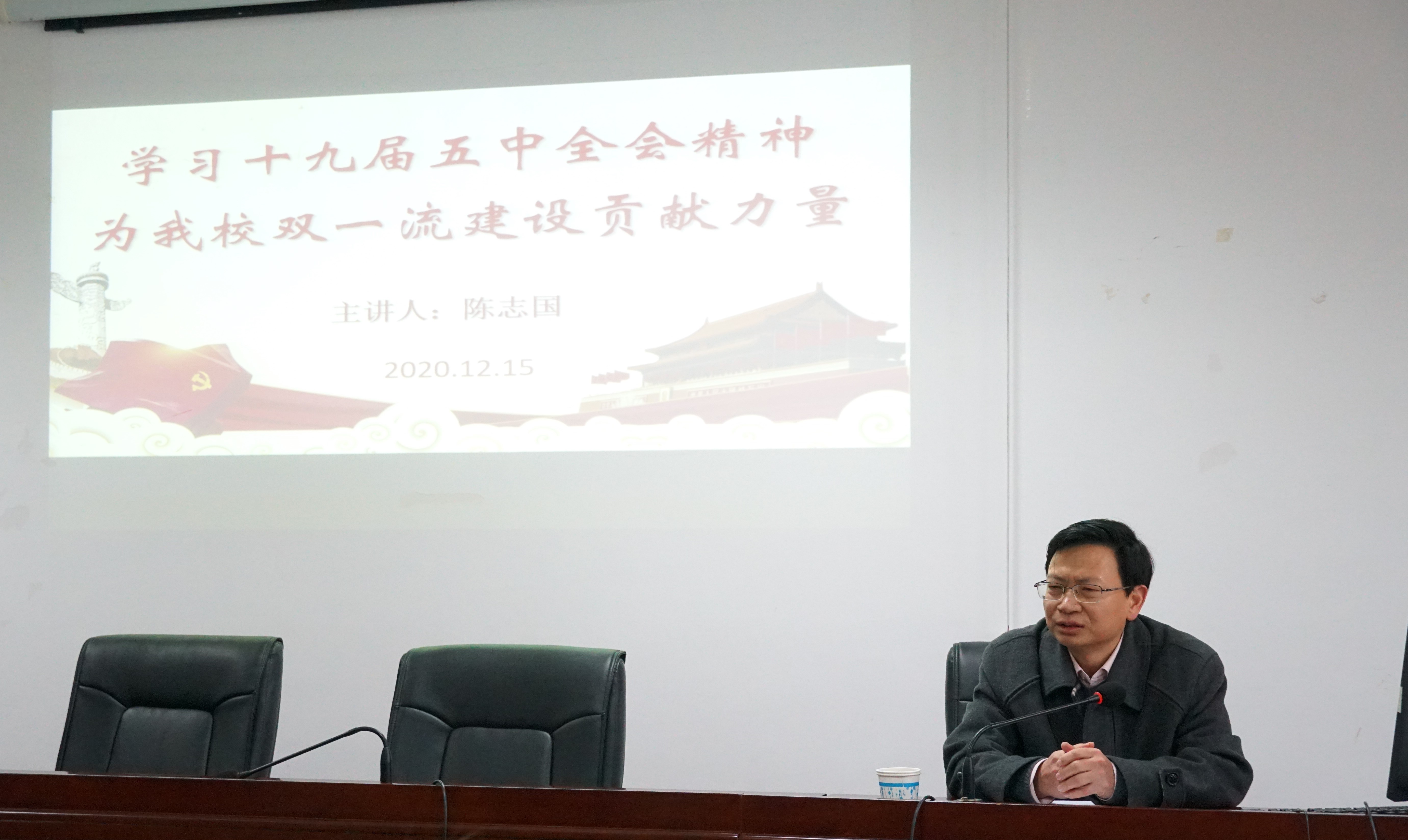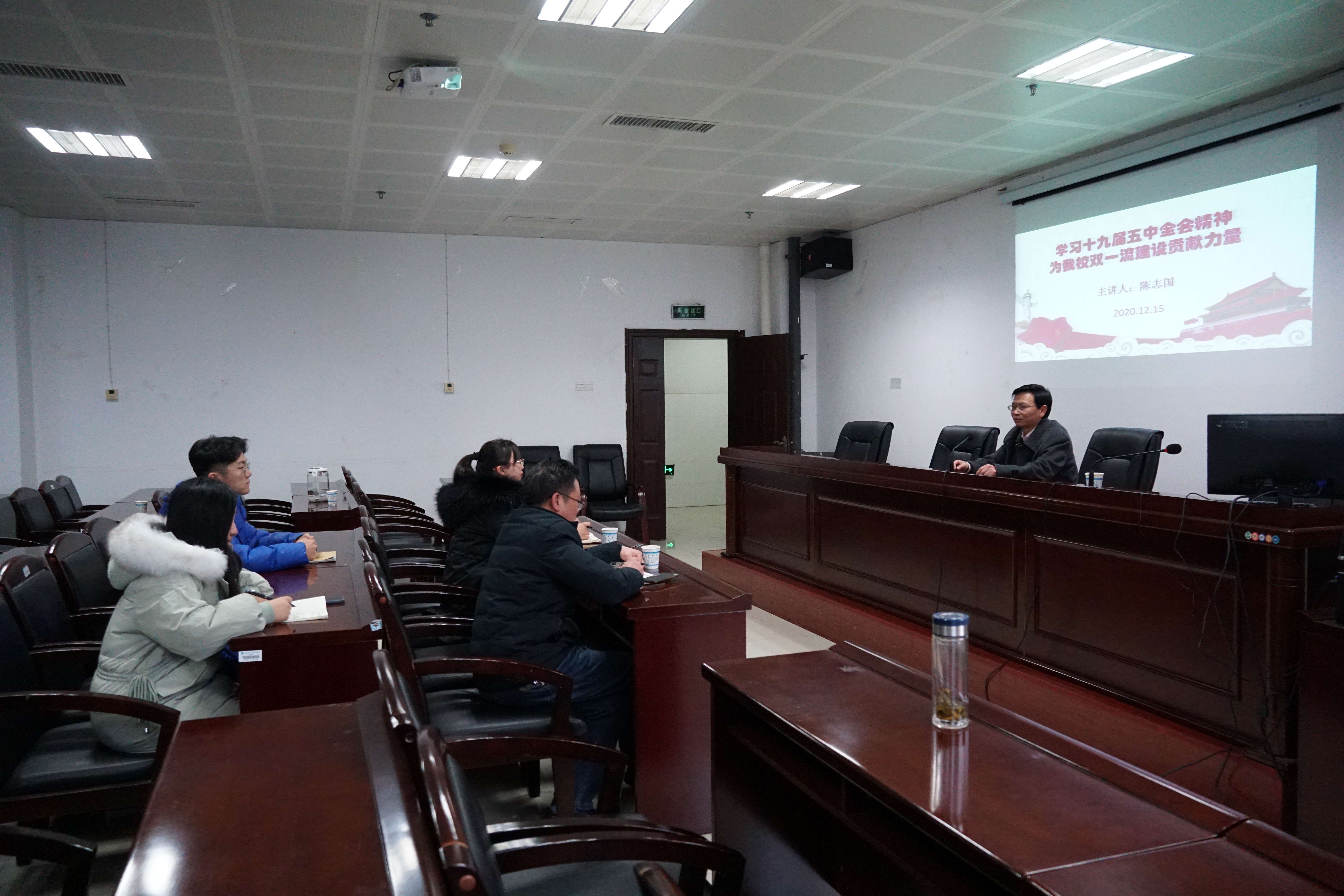 12月15日下午,学校党委委员、副校长陈志国教授以《学习十九届五中全会精神,为beat365双一流建设贡献力量》为题,给国际合作与交流中心(港澳台办公室)党支部党员和入党积极分子上了一堂内容详实、思考深邃的党课。
