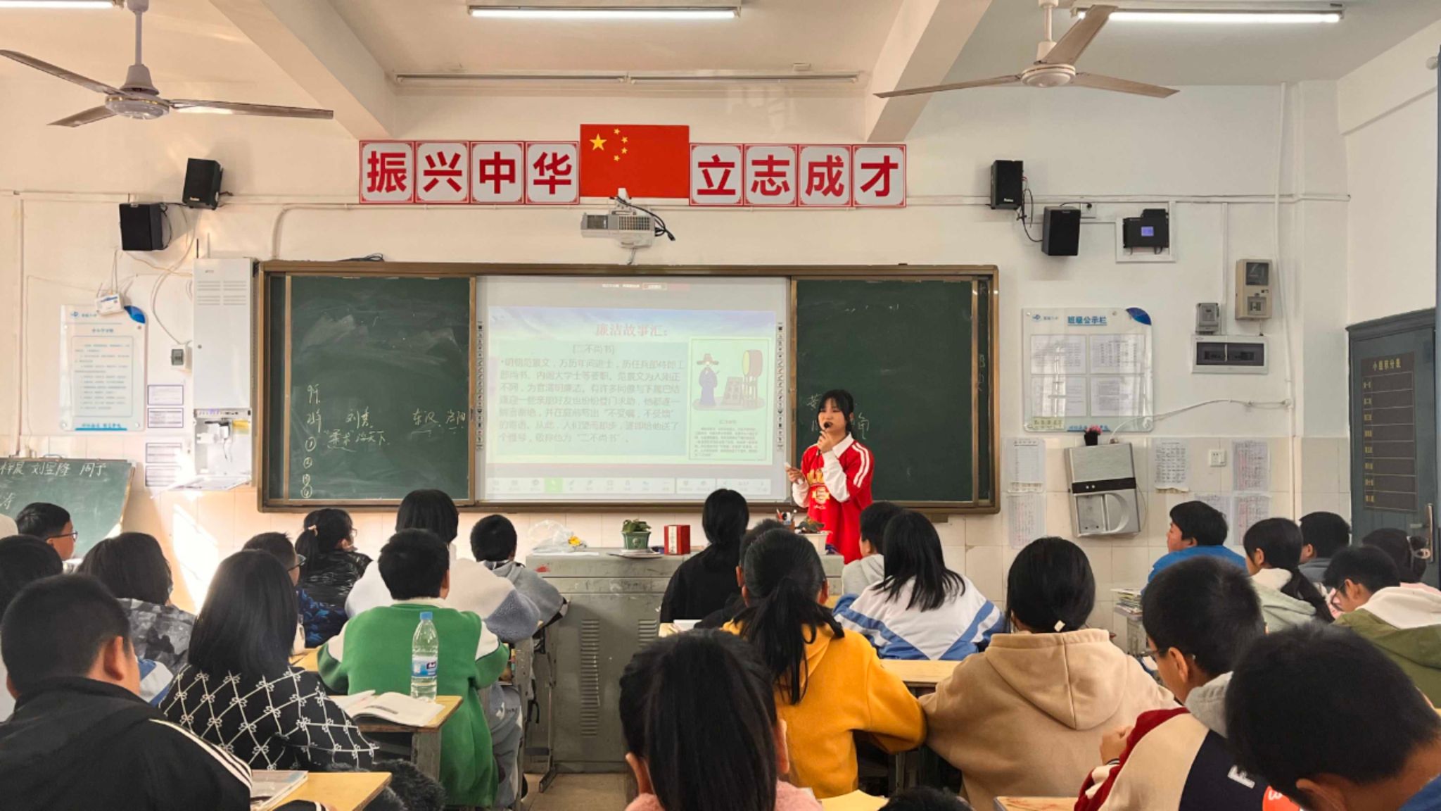 上午九点半文学院全体学生党员、部分团员以及青莲文学社团部分成员来到娄底第八中学,每名成员按照计划分工,找到对应班级的班主任老师,了解相关情况后进行下班宣讲。学生党员们从“清风润万家,廉行溯涵义”“观廉洁诗词,品时代精神”“根植廉洁文化,扣好廉洁纽扣”“廉洁润初心,铸魂担使命”四个方面向娄底第八中学初一学生进行宣讲并与学生互动交流。