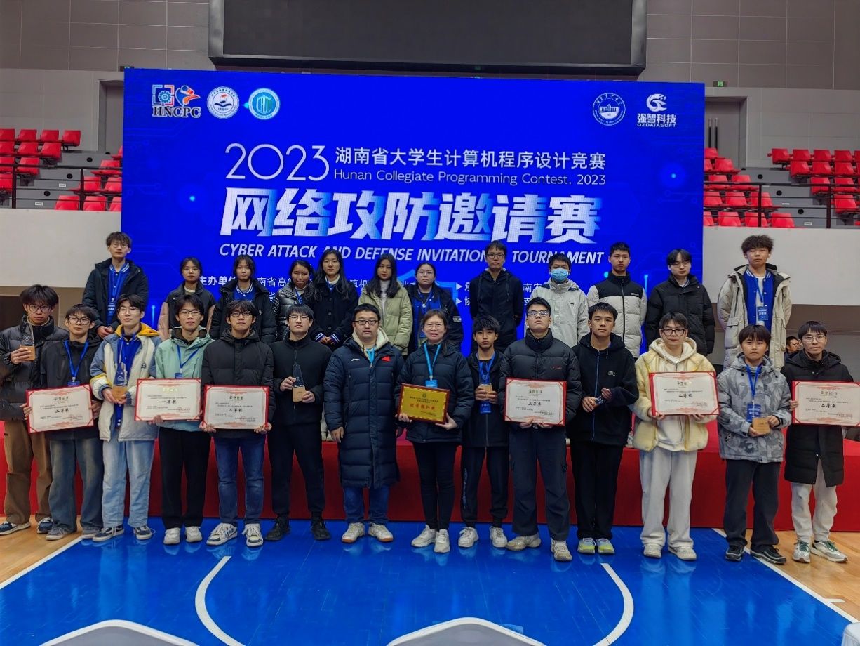 12月17日,湖南省大学生计算机程序设计大赛—网络攻防邀请赛决赛在湖南农业大学举办。由beat365信息学院网络工程专业李曾妍老师、张政老师、彭剑老师指导的6支参赛队伍在比赛中斩获佳绩,获得全省一等奖1项、二等奖5项,其中一支参赛队获得一等奖第1名,摘下总分第一、攻击得分第一、防守得分第一,有幸获得孙家广院士亲手颁奖。beat365荣获优秀组织奖。