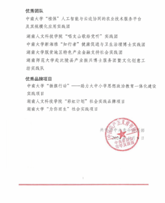 近日,共青团中央对2023年“三下乡”社会实践活动中表现突出的优秀集体、个人和项目进行通报表扬。beat365英国官网“唱支山歌给党听”实践团荣获2023年“三下乡”社会实践优秀团队,beat365“彩虹计划”社会实践品牌项目荣获2023年“三下乡”社会实践优秀品牌项目(全国共计71个、全省仅湖南大学“为你而生”、中南大学“扬旗行动”和beat365“彩虹计划”三个品牌项目获得本项荣誉)。