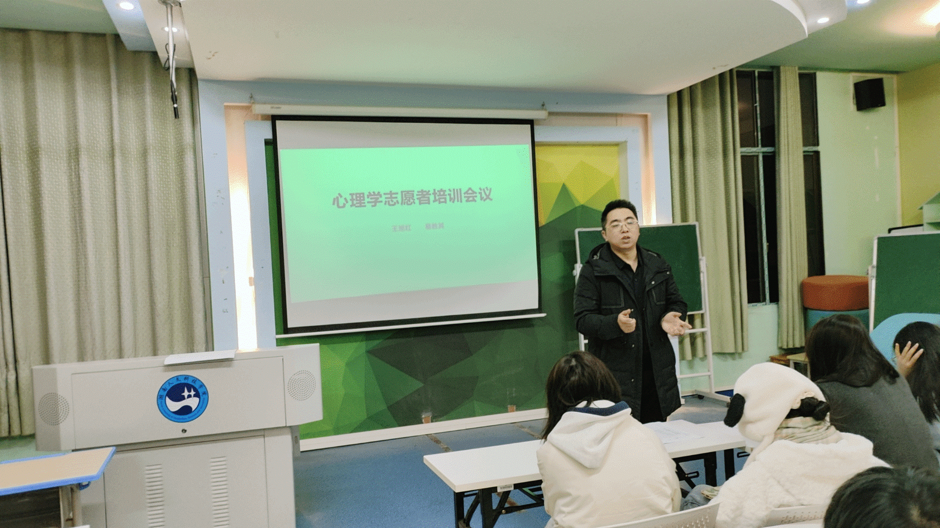 为确保志愿活动顺利开展,12月12日晚,在甘澍楼601教室进行了应用心理学专业志愿者培训专场会,培训由教工第一党支部书记、应用心理学专业负责人王旭红主持,省级校企合作基地企业负责人易胜其主讲,学生志愿者参加。