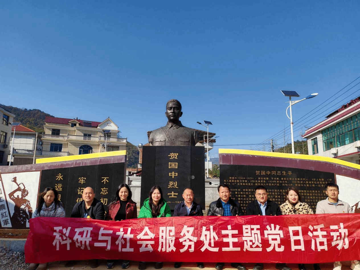 10月20日,为深入贯彻落实党的二十届三中全会精神,加强党员党性教育,科研与社会服务处组织部门全体党员前往贺国中故居,开展主题党日活动。