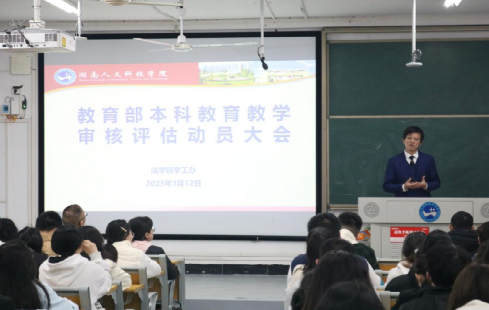3月12日晚,法学院在致远楼308教室召开了教育部本科教育教学审核评估动员大会。学院党总支书记肖兵明、院长朱耀斌、副院长付盾出席,辅导员、团学会干部、各班主要班委参加。大会由党总支副书记邓南南主持。