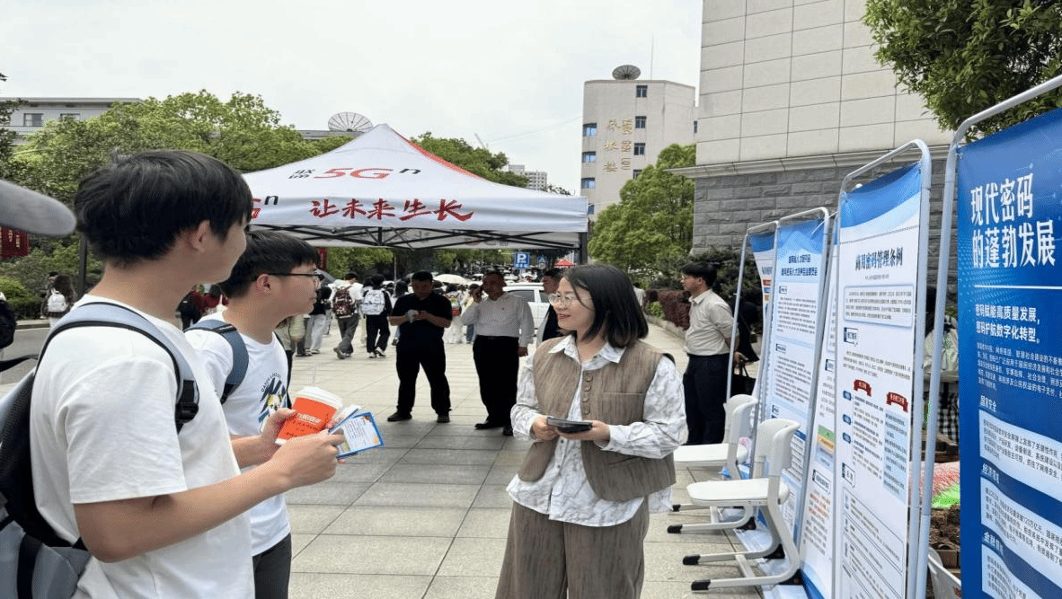 本次活动在图书馆前广场还同步设立了宣传展位,通过图文展板、现场讲解等形式,持续开展密码安全法规制度与知识的普及宣传。展览区域吸引了大量同学驻足学习、互动交流,不少学生在现场表示,“以前对密码技术的了解仅限于表面,这次展览让我们看到了密码在国家安全和日常生活中的真实价值。”