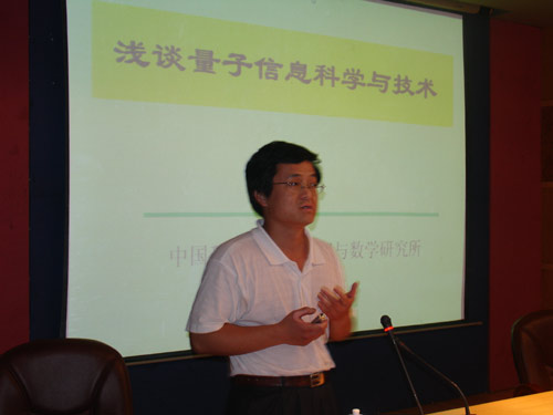 2008年5月22日下午,中国科学院武汉物理与数学研究所研究员、博士生导师冯芒教授应邀在学校多媒体报告厅做了题为“浅谈量子信息科学与技术”的学术讲座。他从结合自己从事量子信息研究的亲身经历,采用朴实的语言,系统而严谨地阐述了量子通信、量子编码和量子计算的发展过程。