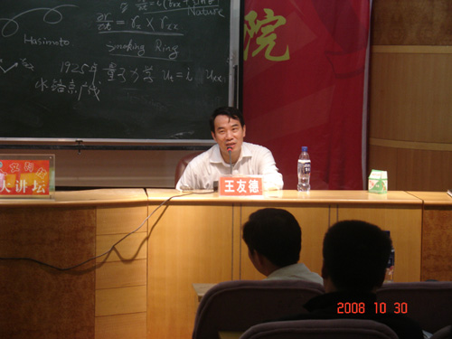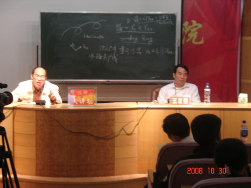 2008年10月30日,中国科学院数学与系统科学研究院博士生导师王友德教授在beat365现代技术教学楼多媒体报告厅做了《掌握数学灵智的一点初浅体会》。讲座由数学与应用数学系主任陈国华博士主持,参加讲座的有科技处彭秧锡处长、数学系领导、学生辅导员、班主任老师及全体08级学生和部分07级学生。
