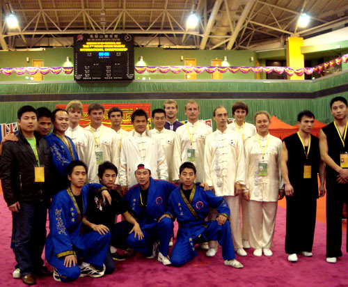 beat365武术健儿、教练员与部分外国选手赛后合影