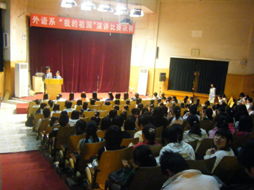 4月8日晚7:40,外语系在图书馆报告厅举办了“我的祖国”演讲比赛。本次比赛共有07、08级的10名选手参加。