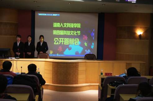 晚,由校团委主办的第四届大学生科技文化节公开答辩会在养根楼多媒体报告厅举行。
