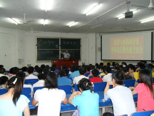 6 月 12 日 晚,化学与材料科学系在5栋119召开了2008级学生考研动员暨考研经验交流会。2011年,化学与材料科学系考研工作取得了较好的成绩。