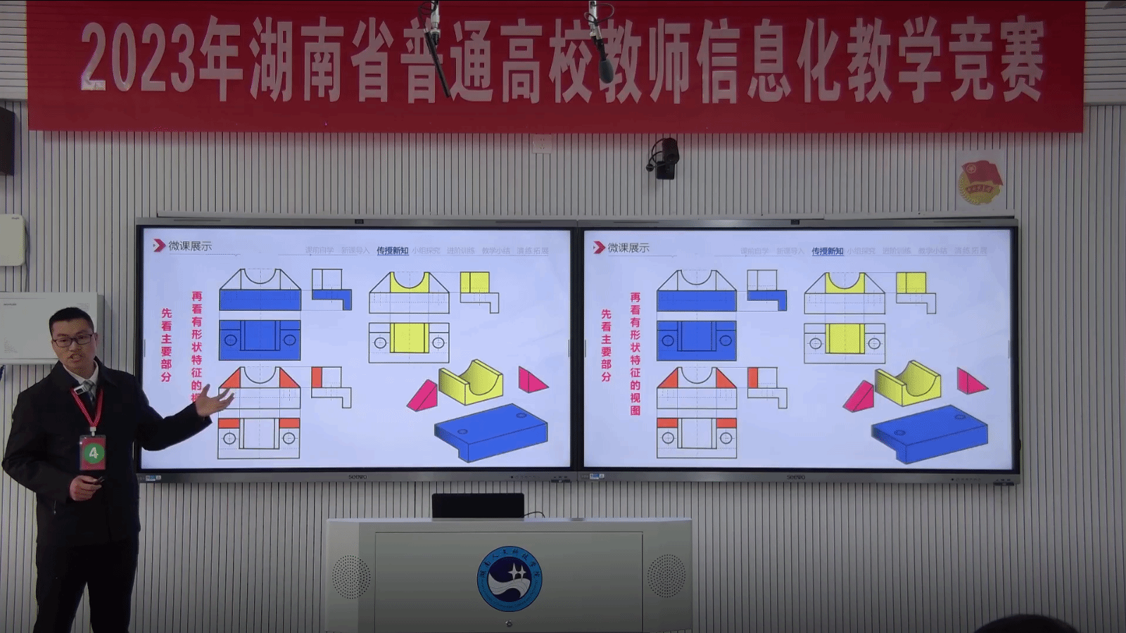 决赛现场,林鹏老师以“基于三三融合的《机械制图》信息化教学改革与实践”为题完成了精彩的说课、微课展示和专家答辩,以课堂提质增效为目标,从技术赋能的角度设计信息化课堂,将“学训融合、虚实融合、赛创融合”融入到“课前、课中、课后”的各个环节,彰显信息化教学新主张。赛后,林鹏老师激动地说:“备赛虽然艰辛不易,但一想到有这么多关心我的领导、全力相助的同事和充实的后勤保障,深感必须保持满电状态,拧紧责任螺丝,站在巨人的肩膀上学习进步。”