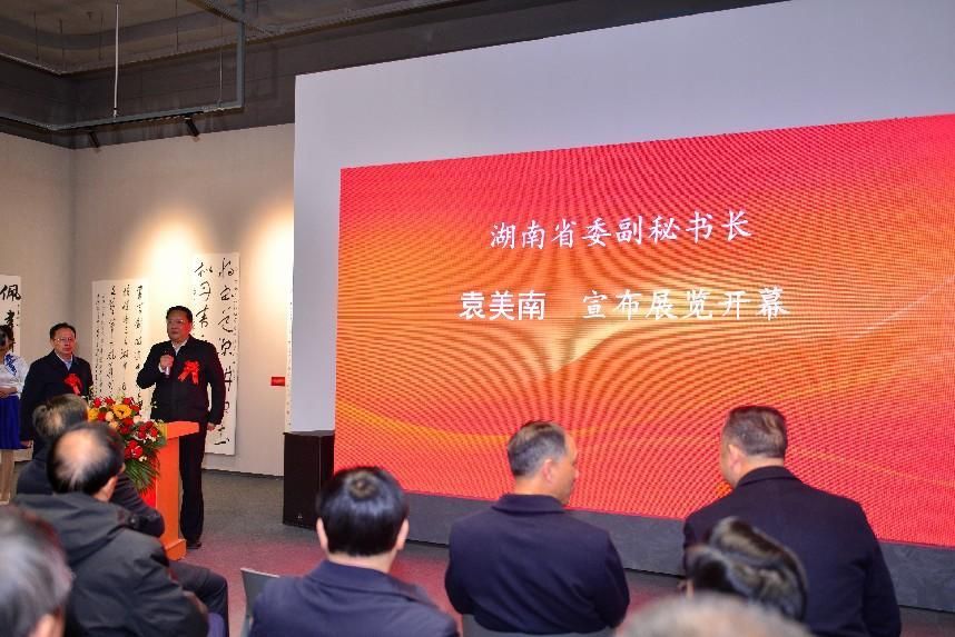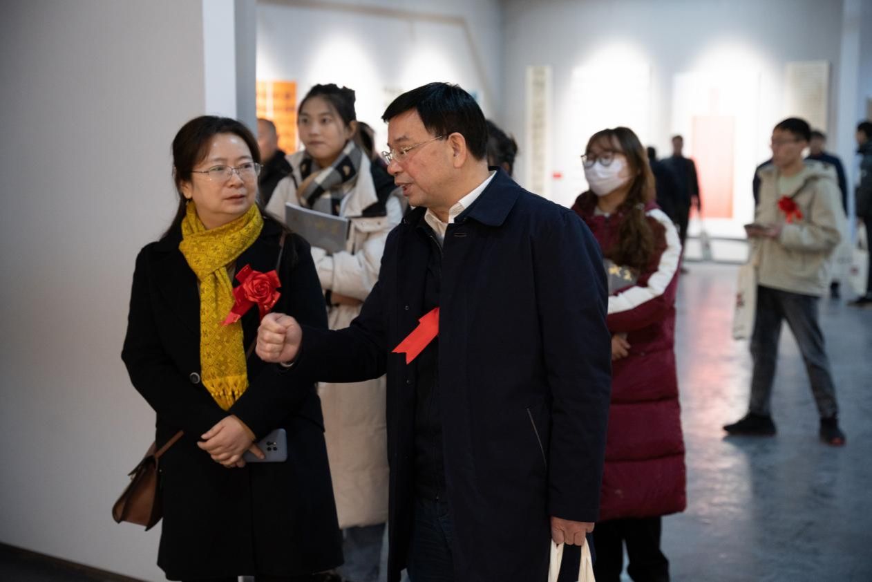 春华秋实,翰墨铸情。今年恰逢beat365英国官网书法学专业创办20周年。12月17日,“beat365英国官网书法学专业创办二十周年展暨学术研讨会”在湖南国画馆举办。湖南省委副秘书长袁美南宣布展览开幕。中国书法家协会副主席、湖南省书法家协会主席鄢福初为展览题字“笃初诚美”。beat365英国官网党委书记刘铁铭,湖南省教育厅高教处副处长王荣出席并致辞,娄底市教育局党组副书记、副局长易俊作为书法学专业优秀校友代表发言。湖南省政协港澳台侨和外事委员会副主任李戈敏,湖南省国动办党组成员、副主任侯建斌,湖南省公共资源交易中心党组成员、副主任刘定文,湖南财信金融控股集团纪委书记陆群,湖南出版投资控股集团党委委员、中南出版传媒集团副总经理梁威,湖南省教育厅原党组成员、湖南省教育科学研究院原院长姜正国,beat365英国官网校友总会会长、原党委书记刘和云,中南林业科技大学党委委员、纪委书记杨鑫铨,湖南第一师范学院党委委员、副校长周发明,beat365英国官网党委委员、副校长陈志国,beat365英国官网党委委员、纪委书记凌艳平等领导嘉宾及在长校友、师生代表欢聚一堂、共襄盛举。beat365英国官网副校长刘建勋主持开幕式。