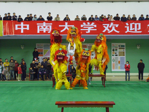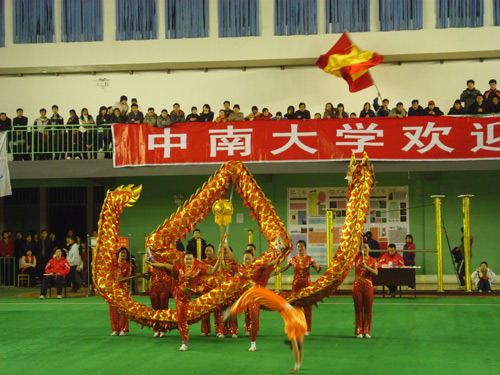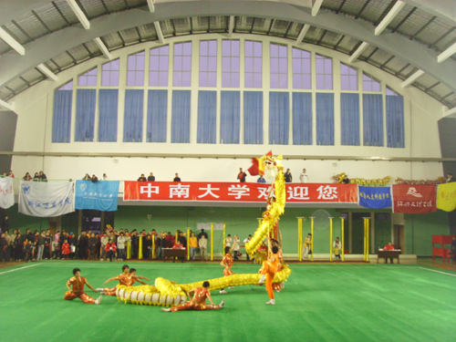 2007年12月30日下午,为期5天的2007“中南杯”第三届中国大学生舞龙舞狮锦标赛在中南大学体育馆内落下帷幕,我院龙狮队参加乙组(体育专业组)男子舞龙规定套路、自选套路,女子舞龙规定套路、自选套路和北狮自选套路及传统舞狮六个项目的竞赛,总共夺得了两块金牌四块银牌的优异成绩。