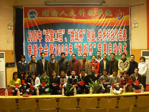 本次表彰大会为我院07年“质量工程”、“挑战杯”创业、学术科技作品大赛划上了一个圆满的句号。同时,也拉开了我院08年“挑战杯”竞赛的序幕。