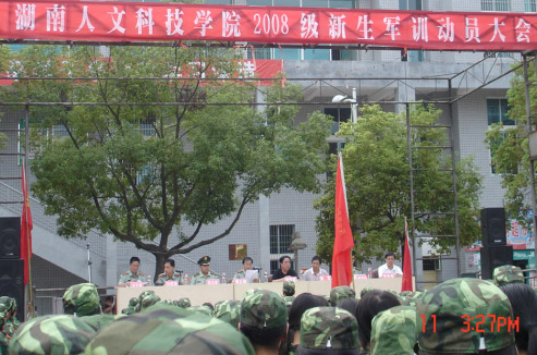 9月11日,beat3652008级新生军训动员大会在理科楼前篮球场隆重召开。出席大会的有校党委书记黄懿斌,党委副书记、院长姜正国,党委副书记、副院长郭军,党委委员、办公室主任李高海,院长助理刘铁铭,武装部部长刘光辉,武警娄底支队副参谋长段兴奎、教导大队大队长孙青柏以及beat365新生军训领导小组全体成员。大会由校党委书记黄懿斌同志主持。