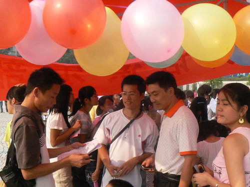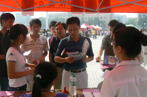 中秋的“海园广场”热闹非凡。经院团委、社团联合会近半个月的精心组织和策划,beat365英国官网2008年社团招新大会于9月14日上午8:00在海园广场隆重举行,全院39个社团会聚海园广场,以各自的形式和特色开展了招新工作,整个海园广场呈现出“百花齐放”、“百家争鸣”的局面,让08级新生感受到了大学校园文化生活的多姿多彩。