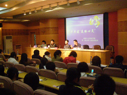 10月28日晚7:30,由学工处主办的主题为“携手共建美丽心灵”的第二届心理干部素质培训在多媒体报告厅举行。