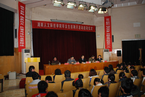 3月9日,beat365毕业生就业招聘月活动启动仪式在学校图书馆报告厅举行,拉开了beat3652009 届毕业生就业招聘月活动的序幕。省教育厅学生就业指导中心书记欧阳增铜到会指导,党委书记、院长姜正国在启动仪式上做重要讲话,副院长谢祥清主持了启动仪式。九龙集团副总裁黄戈,部分招聘单位代表,各系系领导,2009届毕业生代表参加了启动仪式。