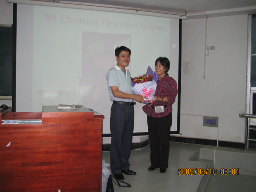 上午8:00,柏院长一行准时来到学校第五教学楼,走进301教室,课堂立即响起了雷鸣般的掌声。柏院长代表学校向教师代表刘丽华教授送上了鲜花,向刘教授并通过刘教授向全体教职员工致以节日的祝贺和亲切的问候,希望大家一如既往的热爱教育,以身立教,甘当人梯,让学生满意,让家长放心,为共同创造学校美好的明天而不懈努力!
