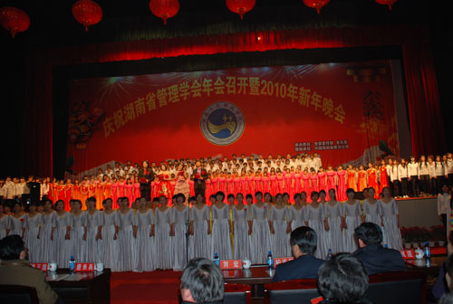 12月26日晚,由党委宣传部、音乐系承办的庆祝湖南省管理科学学会2009年年会召开暨2010年新年晚会在新体育馆隆重举行。党委书记姜正国,校长柏连阳等校领导及参加年会的有关领导、嘉宾和代表出席,beat3652000余名师生到场观看。