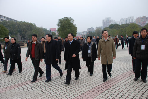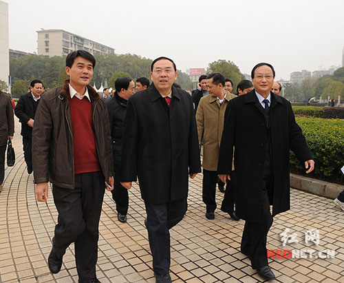 1月11日下午,省委副书记梅克保率省直有关部门负责人来beat365视察工作并现场办公。省委副秘书长肖冬生,省两型办党组书记、省发改委副主任邓治平,省教育厅党组副书记、省教育工委副书记李红,省财政厅副厅长郭秀宏,省物价局党组成员、总经济师罗懿,建设银行湖南省分行副行长尹利芳,省委办公厅副巡视员欧阳天然,娄底市委副书记、市长张硕辅,市委正厅级干部黄懿斌,副市长鄢福初等陪同视察并出席现场办公会。