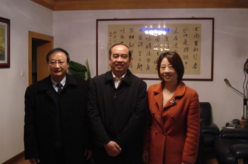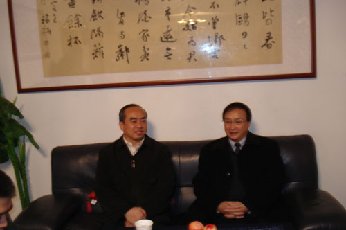 2月2日上班时间才到,林武、姚兵一行已来到学校党委书记姜正国家里,在姜书记家里,林武书记仔细询问了他家小孩的学习情况和爱人的工作情况,与姜博士畅谈了学校2009年取得的辉煌成绩和今年的工作打算。听到学校在全省的“专升本”高校中排列前三名,去年获得的17个国家、省级一等奖中有15个是国家一等奖时,林武书记连说学校真的不错,办学质量可以与老牌大学争锋了,预祝学校在今年的“专升本”高校评估中取得好的结果。姜书记非常感谢市委、市政府对学校和他本人的关心与支持,表示学校在“硬件”基本达到教育部要求的情况下,今年将主要加强“软件”建设,促使学校更上一个台阶。最后,林武书记欣然与姜书记夫妇合影留念。