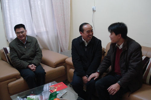 从姜书记家出来,林武书记又来到学校柏连阳校长家,在柏连阳校长略显简陋的住宅中,一落座,林武书记代表市委政府向柏连阳校长表示虎年的新春问候,林武书记盛赞柏校长是我市最年轻的国家级人才,是青春娄底的代表,对柏校长把大房子让给其他博士、教授的做法深表敬意。