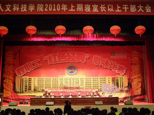 3月24日晚,学校在体育馆召开了2010年上学期寝室长以上干部大会。副校长刘铁铭以及学工处领导、武装保卫处领导、各系分管学生工作的领导、辅导员、助理辅导员、全校寝室长以上学生干部近三千人参加了大会。娄底卫校附属医院门诊部院长王琼应邀参加了本次大会。