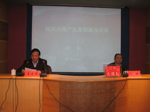 刘教授主讲的题目为“我国房地产问题之我见”。他在充分调查研究的基础上,明确地指出了我国目前房地产开发中的乱象,深刻地分析了这种乱象存在的根源,并提出了治理整顿的基本举措。