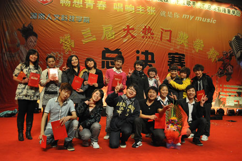 通过角逐,在14人参加晋级“十佳”校园歌手总决赛中,来自中文系的沈春霞、summer high(曾 骏、任晶晶)组合,外语系的李 亮,经济与管理科学系的龚韦霖,音乐系的李尉民、苏智、刘潇远、欧阳慧,通信与控制工程系的阳必超,职业技术教育教学部的彭志凯等同学获得本次总决赛校园“十佳”歌手称号;来自经济与管理科学系的贺书品、音乐系Litte sun(周甜、吴露露)组合、通信与控制工程系的曹 俊、职业技术教育教学部的何叶霞等同学获得本次决赛优胜奖。