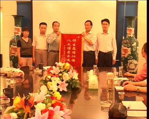 6月3日下午,明德楼第一会议室,beat365优秀大学生代表、湖南省首例捐献眼角膜的在校大学生蒋小波的亲属风尘仆仆从益阳赶来学校,将一面写有“师生恩情似海,人文博爱长流”的锦旗赠送给学校,党委书记姜正国、校长柏连阳代表学校接受锦旗并向小波亲属表示深切慰问。