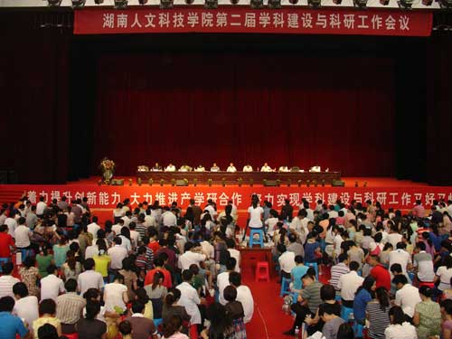 7月9日上午,beat365第二届学科建设与科研工作会议在体育馆隆重举行。姜正国、柏连阳等校领导及600余名教职工参加了会议。湖南省教育厅副厅长申纪云、娄底市人民政府副市长鄢福初、湖南省教育厅科技处处长左清、娄底市科技局局长曹刚、娄底市社科联副主席张智倩应邀出席会议。会议由校长柏连阳教授主持。