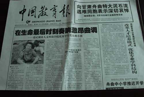 余易因为长期与作为学生干部的小波接触,走得很近,是小波的“易哥”。接受采访时,这位校团委书记说着说着,神情就黯然了下来,“读大学后,小波的生活费不仅没有让亲戚出一分钱,而且每次回家都带三五百元给他妈妈。第二年学费,基本上就是他利用暑期打工赚回来的。20岁出头的大男孩,本应该在假期里与家人相聚,感受家庭的温馨,小波却在烈日下书写自立、自强的宣言!”