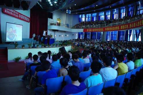 9月18号下午3:30省会第二场报告会在长沙民政职业技术学院隆重举行,来自长沙民政职业技术学院、长沙理工大学、湖南农业大学、中南林业科技大学的27所高校的1500余名学生聆听了报告,献花之后,长沙民政职业技术学院党委书记罗志代表主办方对报告团的到来表示了热烈欢迎,并表示将在全校掀起学习蒋小波先进事迹的热潮。