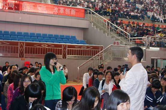 张云峰老师通过与学员的交流互动引出了“大学里最重要的选择是什么”的论题,提出了“同流是为了交流,交流是为了交心,交心是为了交情”的论断,在明确了整场演讲主题的同时奠定了轻松诙谐的情感基调。张老师用“有口难言”、“自作自受”、“不了了之”概括了人的一生,强调了“选择比努力更重要”的中心论点。针对大学新生的心理特点,教育学员们“在一个适合的时间、正确的地方,做一个最有身份的自己”,尽快适应大学生活,努力充实提高自我,创造属于自己的灿烂前程。最后,张先生用“不三不四”告诫学员们不要自大、自卑和折腾,提醒他们“图书馆不是用来泡的”、“大学老师不是用来怕的”“、大学资源不是用来看的”、“互联网不是用来玩的”,希望他们合理利用资源,丰富自我。