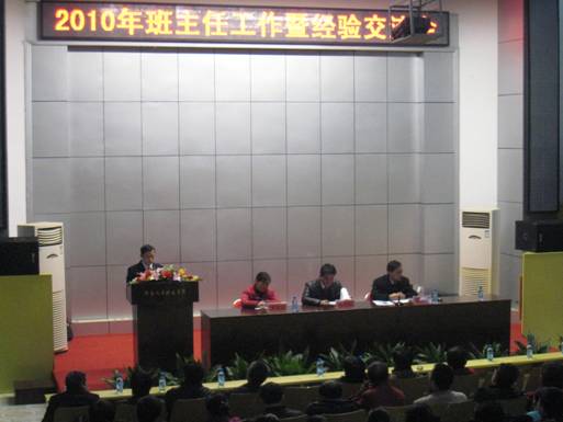 通信与控制工程系2009级通信工程三班班主任陈敢新、外语系2008级英语二班班主任谭艳辉、2009级公共事业管班班主任谭景林、美术系2010级艺术专业四班班主任李馥佐等4位同志就如何做好班主任工作在会上作了经验介绍。学工处处长刘铁峰总结了2010年班主任工作和全面部署了下一阶段班主任工作。